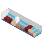 Garage space, equipped with lights, 120v outlets, compressed air, ventilation, large overhead door, concrete floor.